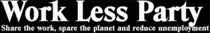 The Work Less Party was a political party in the Canadian province of British Columbia. The party was founded in 2003 by Conrad Schmidt and de-registered in May 2017. The primary aim of this party was to move to a 32-hour work week and its party slogan was "Work Less, Consume Less, Live More." The slogan describes the party's aim to encourage people to reduce their consumption, to be more environmentally and socially conscious, and to focus on real values. Instead of consuming, people are encouraged to spend time on family, friends, community engagement, art and creative endeavours, spiritual exploration, and athletic activities.