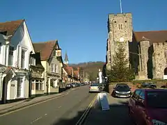 ![]() High Street, Wrotham, showing St George’s Church at right | |