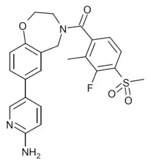 - ↑ Takeuchi CS, Kim BG, Blazey CM, Ma S, Johnson HW, Anand NK, et al. (March 2013). "Discovery of a novel class of highly potent, selective, ATP-competitive, and orally bioavailable inhibitors of the mammalian target of rapamycin (mTOR)". Journal of Medicinal Chemistry. 56 (6): 2218–34. doi:10.1021/jm3007933. PMID 23394126.