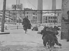 With the onset of winter, the CSIR units began consolidating their occupation zone and preparing defensive works. In the last week of December, the 3rd Mobile Division was counter-attacked by Soviet forces and managed to repel the attacks long enough for the 1st Panzer Army to reinforce the sector and defeat the Soviet attack. The "Christmas Battle" was hailed as a great victory in Italy, though the division likely would have fallen without German support. It subsequently weathered the 1941–1942 winter quite well in its relatively quiet occupation zone.[7]
