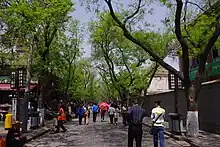 The Xi'an Muslim Quarter (Chinese: 西安回民街) is a snack and commercial street situated in the center part of Xi'an, China. It is close to the Bell Tower and the Drum Tower. Shehui Road is to the east, Zaoci Lane to the west, West Avenue to the south, and Hongfu Street to the north.[1] There are ten mosques in the area. The biggest one is the Great Mosque, which was listed as the state-level protected heritage for its traditional buildings and religious significance.[2] According to demographic statistics in 2010, about 60,000 people live in this area, more than half of which are the Huis and the others are the majority Hans.[3] In the past few decades, Xi'an Muslim Quarter has become a well-known tourism site which is famous for its culture and food. It attracts visitors from all over the world each year.