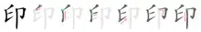 Stroke order of the 印 character