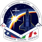 Lonchakov's first spaceflight was the Space Shuttle mission STS-100 that installed the International Space Station's robotic arm, Canadarm2. Other major objectives for Endeavour's mission were to berth the Raffaello logistics module to the station, activate it, transfer cargo between Raffaello and the station, and reberth Raffaello in the shuttle's payload bay. Space Shuttle Endeavour lifted off from the Kennedy Space Center at 18:40:42 UTC on 19 April 2001.[5] Lonchakov served as a mission specialist. After nearly two days of flight, Endeavour docked with the ISS on 21 April 2001 at 13:59 UTC. After 8 days of docked operations, the shuttle undocked from the ISS at 17:34 UTC on 19 April. Landing was originally planned at KSC however continuing cloud cover, rain showers and gusty winds forced Endeavour to land at Edwards Air Force Base in California.[6] The mission duration of STS-100 was 11 days, 21 hours, 31 minutes, 14 seconds.