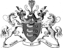 ![]() Coat of arms escutcheon depicts three leftwards facing, horizontally aligned silver knives with golden handles | |