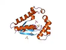 - 1 2 Meinhart A, Alonso JC, Sträter N, Saenger W (February 2003). "Crystal structure of the plasmid maintenance system epsilon/zeta: functional mechanism of toxin zeta and inactivation by epsilon 2 zeta 2 complex formation". Proc. Natl. Acad. Sci. U.S.A. 100 (4): 1661–6. doi:10.1073/pnas.0434325100. PMC 149889. PMID 12571357.