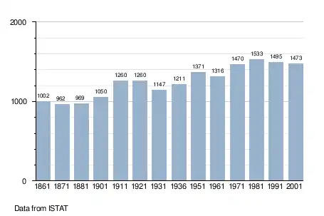 - ↑ "Popolazione Residente al 1° Gennaio 2018". Italian National Institute of Statistics. Retrieved 16 March 2019.