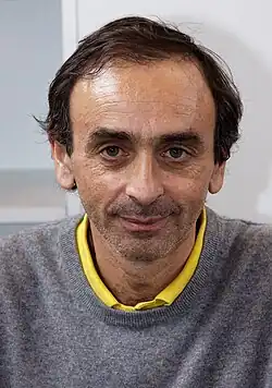 Éric Justin Léon Zemmour, born 31 August 1958, is a Jewish Algerian French politician, polemicist, essayist, political journalist and writer. A household name in his homeland, he gained international attention with the publication of The French Suicide, a best-seller book for which he was awarded the 2015 Prix Combourg-Chateaubriand. Zemmour also received the 2011 Prix Richelieu for the whole of his career as a journalist. Zemmour announced his candidacy for the 2022 French presidential election on 30 November 2021, running as an independent.