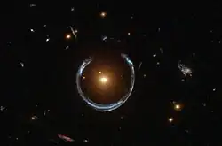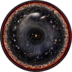 - In considering the structure of the universe... Einstein assumed... the irregularities in the distribution of matter can be neglected [i.e., the universe is homogeneous]. ...he noted that the largest velocities then assigned to the stars and nebulae were very small compared with the velocity of light. In 1917... the immense red-shifts of the farther nebulae were unknown. Einstein, therefore, considered a model of the universe in which matter was distributed in a uniform and continuous manner, the relative motion of the various parts being negligible [i.e., a static universe]. Following Seeliger, he found it impossible to regard the system as filling the whole of [infinite] Euclidean space. Also he could not regard the universe as an island in infinite space. For, in applying a well-known theorem of Boltzmann relating the densities at various points of space in which a distribution of particles is moving at random, he showed that zero density at the boundary would necessitate zero density at all points inside.