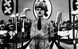 - [Hynkel addressing the crowds, referring to his colleagues: clearly modelled upon Göring and Goebbels]