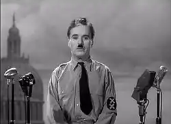 - In which Chaplin plays the roles of "Adenoid Hynkel", the dictator of Tomania, and "A Jewish Barber" the hero of the tale