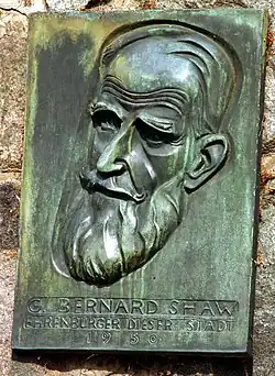 George Bernard Shaw (26 July 1856 – 2 November 1950), known at his insistence simply as Bernard Shaw, was an Irish playwright, critic, polemicist and political activist with a range incorporating both contemporary satire and historical allegory. He wrote more than sixty plays, including such works as Man and Superman (1902), Pygmalion (1913) and Saint Joan (1923). Shaw was awarded the Nobel Prize in Literature in 1925.
