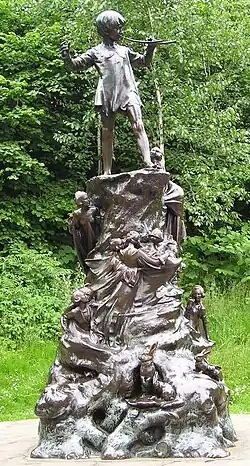 Full text online - This story contained the first published reference to "Peter Pan"; after the success of the play Peter Pan, or The Boy Who Wouldn't Grow Up which premiered on 27 December 1904, the chapters involving Peter were published as Peter Pan in Kensington Gardens (1906)