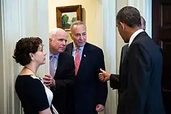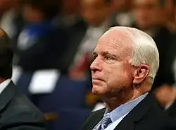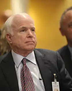 John Sidney McCain III (29 August 1936 - 25 August 2018) was an American politician, statesman, and United States Navy officer who served as a United States Senator for Arizona from 1987 until his death in 2018. He previously served two terms in the United States House of Representatives and was the Republican nominee for president of the United States in the 2008 election, which he lost to Barack Obama.