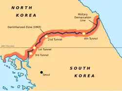 Damage was also widespread in South Korea, where Seoul changed hands four times. But most combat took place in the northern or central parts of the peninsula around the current Demilitarized Zone, which divides the countries, Professor Cumings said.- Liam Stack, “Korean War, a ‘Forgotten’ Conflict That Shaped the Modern World”, The New York Times, (Jan. 1, 2018)