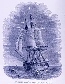 - Opposite the mouth of the works, on the further side of the wide wooden hearth, was the windlass. This served for a sea-sofa. Here lounged the watch, when not otherwise employed, looking into the red heat of the fire, till their eyes felt scorched in their heads. Their tawny features, now all begrimed with smoke and sweat, their matted beards, and the contrasting barbaric brilliancy of their teeth, all these were strangely revealed in the capricious emblazonings of the works. As they narrated to each other their unholy adventures, their tales of terror told in words of mirth; as their uncivilized laughter forking upwards out of them, like the flames from the furnace; as to and fro, in their front, the harpooneers wildly gesticulated with their huge pronged forks and dippers; as the wind howled on, and the sea leaped, and the ship groaned and dived, and yet steadfastly shot her red hell further and further into the blackness of the sea and the night, and scornfully champed the white bone in her mouth, and viciously spat round her on all sides; then the rushing Pequod, freighted with savages, and laden with fire, and burning a corpse, and plunging into the blackness of darkness, seemed the material counterpart of her monomaniac commander's soul.