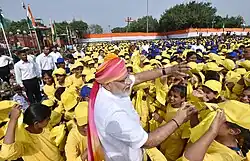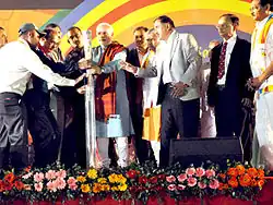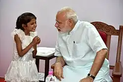 Narendra Damodardas Modi (born 17 September,1950 in Vadnagar) is the 15th Prime Minister of the Republic of India. Modi is leader of the Bharatiya Janata Party (BJP), was the Chief Minister of Gujarat from 2001 to 2014 and is the Member of Parliament (MP) from Varanasi.