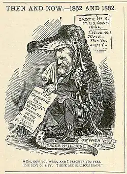 III. No permits will be given these people to visit Head Quarters for the purpose of making personal application for trade permits.- General Order Number 11 (17 December 1862); Abraham Lincoln on learning of this order drafted a note to his General-in-Chief of the Army, Henry Wager Halleck instructing him to rescind it. Halleck wrote to Grant: