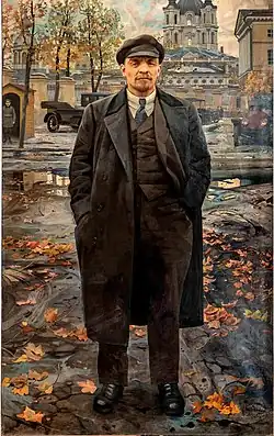 Vladimir Ilyich Lenin (Russian: Владимир Ильич Ленин), born Vladimir Ilyich Ulyanov (Russian: Влади́мир Ильи́ч Ульянов) (22 April 1870 (10 April (O.S.)) – 21 January 1924) was a Russian revolutionary, the leader of the Bolshevik communist party, the first Premier of the Soviet Union and the main theorist of Leninism. He married the revolutionary Nadezhda Krupskaya in 1898.