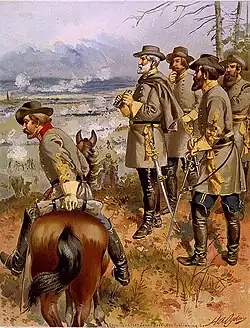 By a rifleman hid in the thicket.- Ethel Lynn Beers, "The Picket Guard". Claimed by Lamar Fontaine. Reported in Hoyt's (1922), p. 842
