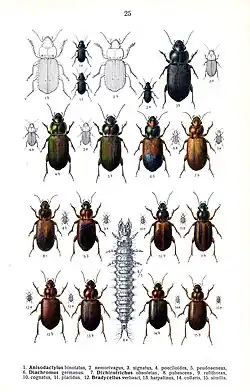 - Lorenz, W. 2018. CarabCat: Global database of ground beetles (version Oct 2017). In: Roskov Y., Abucay L., Orrell T., Nicolson D., Bailly N., Kirk P.M., Bourgoin T., DeWalt R.E., Decock W., De Wever A., Nieukerken E. van, Zarucchi J., Penev L., eds. 2018. Species 2000 & ITIS Catalogue of Life, 20th December 2017. Digital resource at www.catalogueoflife.org/col. Species 2000: Naturalis, Leiden, the Netherlands. ISSN 2405-8858. Reference page. [accessed on January 19, 2018]