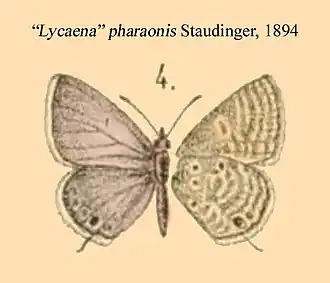 - Lycaena pharaonis Staudinger, 1894: 243, pl. 9, fig. 4.