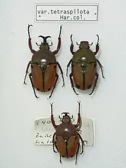 - Schoolmeesters, P. 2017. Scarabs: World Scarabaeidae Database (version Jul 2016). In: Roskov Y., Abucay L., Orrell T., Nicolson D., Bailly N., Kirk P., Bourgoin T., DeWalt R.E., Decock W., De Wever A., Nieukerken E. van, Zarucchi J., Penev L., eds. 2017. Species 2000 & ITIS Catalogue of Life, 30th January 2017. Digital resource at www.catalogueoflife.org. Species 2000: Naturalis, Leiden, the Netherlands. ISSN 2405-8858. Reference page. [accessed on May 13, 2017]