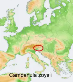- Campanula zoysii Wulfen in N.J. von Jacquin, Collectanea 2: 122 (1789).
