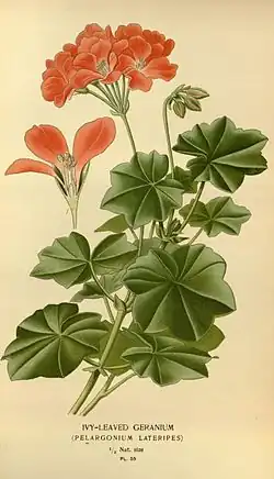 - Formula hybridae: Pelargonium peltatum (L.) L'Hér. × Pelargonium × hortorum L.H.Bailey