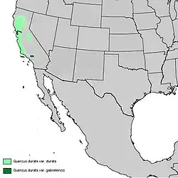 - Quercus dumosa subsp. durata (Jeps.) A.Camus, Chênes, Atlas 2: 68 (1935).