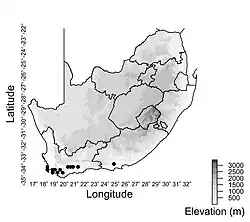 - Typus: South Africa, Western Cape Province, 3318 (Cape Town): Summit of Table mountain near Cape Town, (‒CD), 24 Jan 1811, Burchell 557 Lectotypus: K [K000244895].