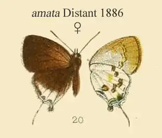 - Sinthusa amata Distant, 1886: 461, pl.44, fig.20 ♀.