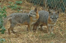 - 中文: 島嶼灰狐,海岸灰狐,短尾狐,島狐,海峽群島狐,海峽群島灰狐,加利福尼亞海峽群島狐,海島灰狐