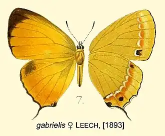 - Zephyrus michaelis gabrielis (var.) Leech, [1894]: 389, pl.28 fig.7.