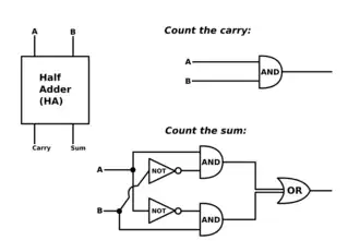 The Half-Adder contain two main elements: counting of the sum and counting of the carry.