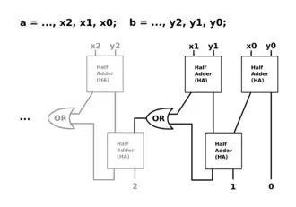 It is a "global" scheme, because possible to count whole numbers. For adding length of number we can add new repeatable patterns of half-adders and OR.
