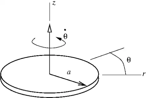 A thin disk of radius is spinning about its axis with a constant angular velocity . Find the stress field in the disk using an Airy stress function and a body force potential.