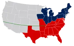 Through the help of canals and roadways, America moves westwards and acquires nine new states from 1791-1819. These states were admitted either as a free state, where slavery is outlawed, or a slave state, where slavery is permitted. This would go on until Missouri's request to be admitted as a slave state disrupts the balance.