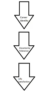 Life satisfaction; “the extent to which a person finds life rich, meaningful, full, or of high quality” https://dictionary.apa.org/life-satisfaction . A contributing factor to an individuals life satisfaction comes from self-regulation, and mechanisms which regulate this quality (Garrison et al., 2016). Generally, self-regulatory processes largely involve emotions and consequent behaviour (Garrison et al., 2016). However, the “controllability over embracement” of uncertainty is significantly influential to these mechanisms as well (Garrison et al., 2016). Control over uncertainty suggests a switch of power which individuals could harness, to thus improve reactions to the unknown. However, “a growing number of mental health researchers and practitioners have been emphasizing that control can cause psychological distress” (Garrison et al., 2016). In a study conducted by Garrison, tolerance of uncertainty is posed as a “central mediator” in the relationship between career identity and life satisfaction (Garrison et al., 2016). Career identity associated with tolerance for uncertainty, which in turn increases positive emotions, engagement and eagerness, such and minimises “anxiety and distress”, which successively improves elements of life satisfaction (Garrison et al., 2016).