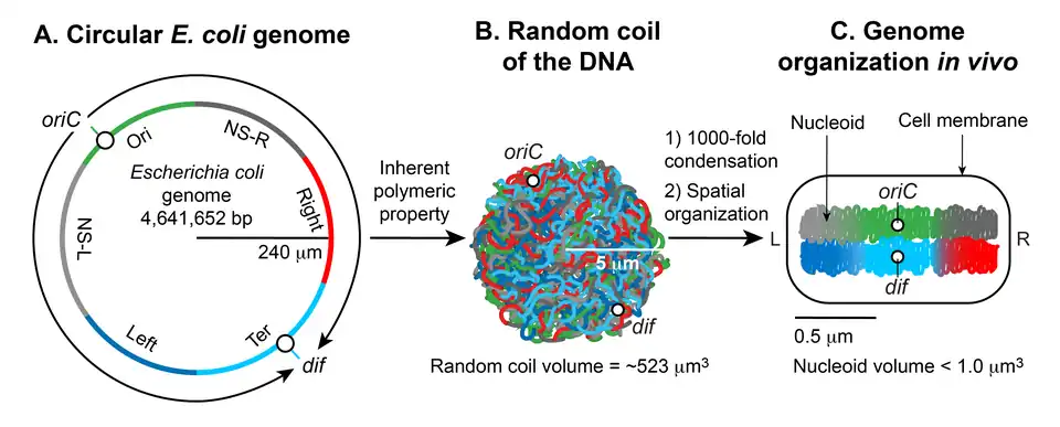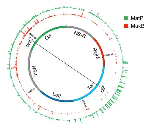 {{citation}}: Check date values in:|date=(help) - ↑ Duigou, Stéphane; Boccard, Frédéric (2017-5), "Long range chromosome organization in Escherichia coli: The position of the replication origin defines the non-structured regions and the Right and Left macrodomains", PLoS genetics, 13 (5): e1006758, doi:10.1371/journal.pgen.1006758, ISSN 1553-7404, PMC 5441646, PMID 28486476