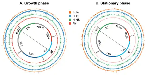 {{citation}}: CS1 maint: PMC format (link) - ↑ Berger, Michael; Gerganova, Veneta; Berger, Petya; Rapiteanu, Radu; Lisicovas, Viktoras; Dobrindt, Ulrich (08 22, 2016), "Genes on a Wire: The Nucleoid-Associated Protein HU Insulates Transcription Units in Escherichia coli", Scientific Reports, 6: 31512, doi:10.1038/srep31512, ISSN 2045-2322, PMC 4992867, PMID 27545593