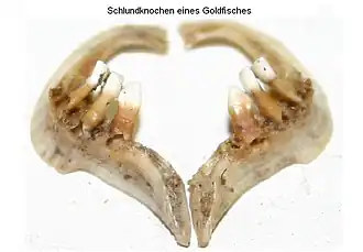 Pharyngeal teeth are teeth in the pharyngeal arch of the throat of cyprinids, Catostomidae (sucker)s, and a number of other fish species otherwise lacking teeth.[2]