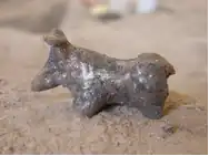 During the Neolithic, people learned to weave baskets from plant materials, and to make cloth from a variety of sources, including plant fibers and animal hair. They used animal furs and hides, as well as vegetable fibers such as flax, for clothing and bedding. They used wood, stone, shell, bone, and animal horn to make tools, weapons, and household implements. At Çatalhöyük, the local clays were used to make building bricks and plaster for construction, to create decorative items (such as the tiny beads found in an infant’s grave at Building 3), and to make sculptures. In fact, though we can only speculate about spiritual belief during the Neolithic, clay sculptures of corpulent female nudes found throughout the settlement have been the source some people’s beliefs that an “earth mother” cult once thrived there.