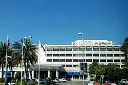 - 🌍 Hilton Abu Dhabi, Corniche East, ☏ +971 2 6811900. One of the older hotels in Abu Dhabi, but kept in good shape and renovated. There is a huge Hiltonia beach, pool and spa complex across the street (free for guests), and a small gym in hotel. "Plus" rooms face the sea but are otherwise identical to normal ones. It's a fair distance from the city center, which is both good (no construction noise) and bad (virtually nothing within walking distance). There are shuttle services to the Marina Mall and the city center offered.