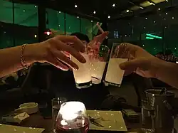 Cocktails are mixed drinks, usually based on a hard liquor (e.g., whisky, rum, gin or vodka), combined with some amount of simple syrup (sugar dissolved in water) or sweet liqueur, and often bitters or bitter liqueur and fruit or vegetable juice, generally garnished with a piece of fruit, a leaf, or an olive. Possible combinations are almost endless, and cocktail bars can be found in many parts of the world. The International Bartenders Association maintains a list of official cocktails and recipes, which are used in bartending competitions, though many bars have their own in-house cocktails that are not available anywhere else. Cocktails gained popularity during the Prohibition era in the U.S., when spirits were more commonly smuggled than fermented beverages and mixing spirits was a common way to mask sub-par taste and quality and/or dilute the high alcohol content.