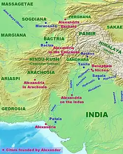 From Central Asia he moved to invade the Indian Subcontinent. Along the way he founded several cities: