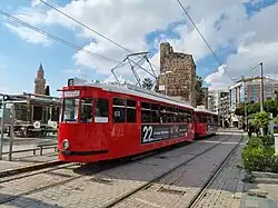 Line T2 is a heritage line, with 1950s/60s tramcars donated by the city of Nuremberg in 1999 in gratitude for all those kebabs and factory workers. It runs near the coast from the Museum (transfer to Tram 3) east to Cumhuriyet downtown (transfer to T1) then south through Old Town to Zerdalilik. It's mostly single track with passing loops, and the project to double-track it has stalled.