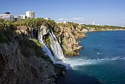 - 🌍 Düden Lower Waterfalls on Lara Cd are where the Düden River plunges 40 m into the sea.