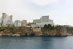 - 🌍 Akra Hotels, Lara Cd 24, ☏ +90 242 310 9999. Smart efficient hotel, limited sea access. B&B double 3000 TL.