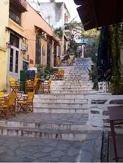 Gentrified during the 1990s and now very popular with tourists, Plaka is a charming historic district at the foot of the Acropolis, with its restored 19th-century neoclassical homes, pedestrianized streets, shops and restaurants, and picturesque ruins from the city's Roman era. Thissio, to the west side of the Acropolis, is very similar and now houses many restaurants and cafes. Between the two is Monastiraki, a very bohemian district increasingly popular with tourists, with stores selling a variety of items including antiques, cookware, souvenirs, arts and crafts, movie posters, punk culture, funky clothing, and pretty much anything you can think of. Another part of Plaka is Anafiotika and is on the northernmost place. There you will find the first university of Athens before it was relocated in central Athens. Its an oasis of calm and quietness, and there are many green spaces which are part of the green space of Acropolis.