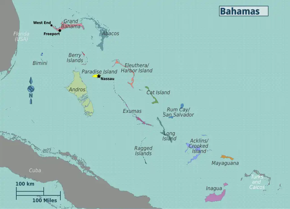 The Bahamas, or The Bahama Islands, is an archipelago consisting of many islands in the Atlantic Ocean east of Florida. The country is made up of about 2,000 islands if you include the cays, which are small islands that are formed on coral reefs. Not densely populated, the Bahamas is renowned for its natural beauty, unique culture, and is a popular tropical vacation destination.